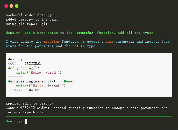 - 界面像 VS Code: Aider 的界面跟 VS Code 差不多,用惯 VS Code 的人基本不用学就能上手。