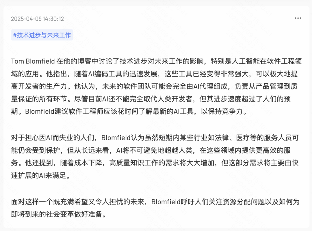 - 调用 Flomo MCP 将总结的内容记录到 Flomo 中。