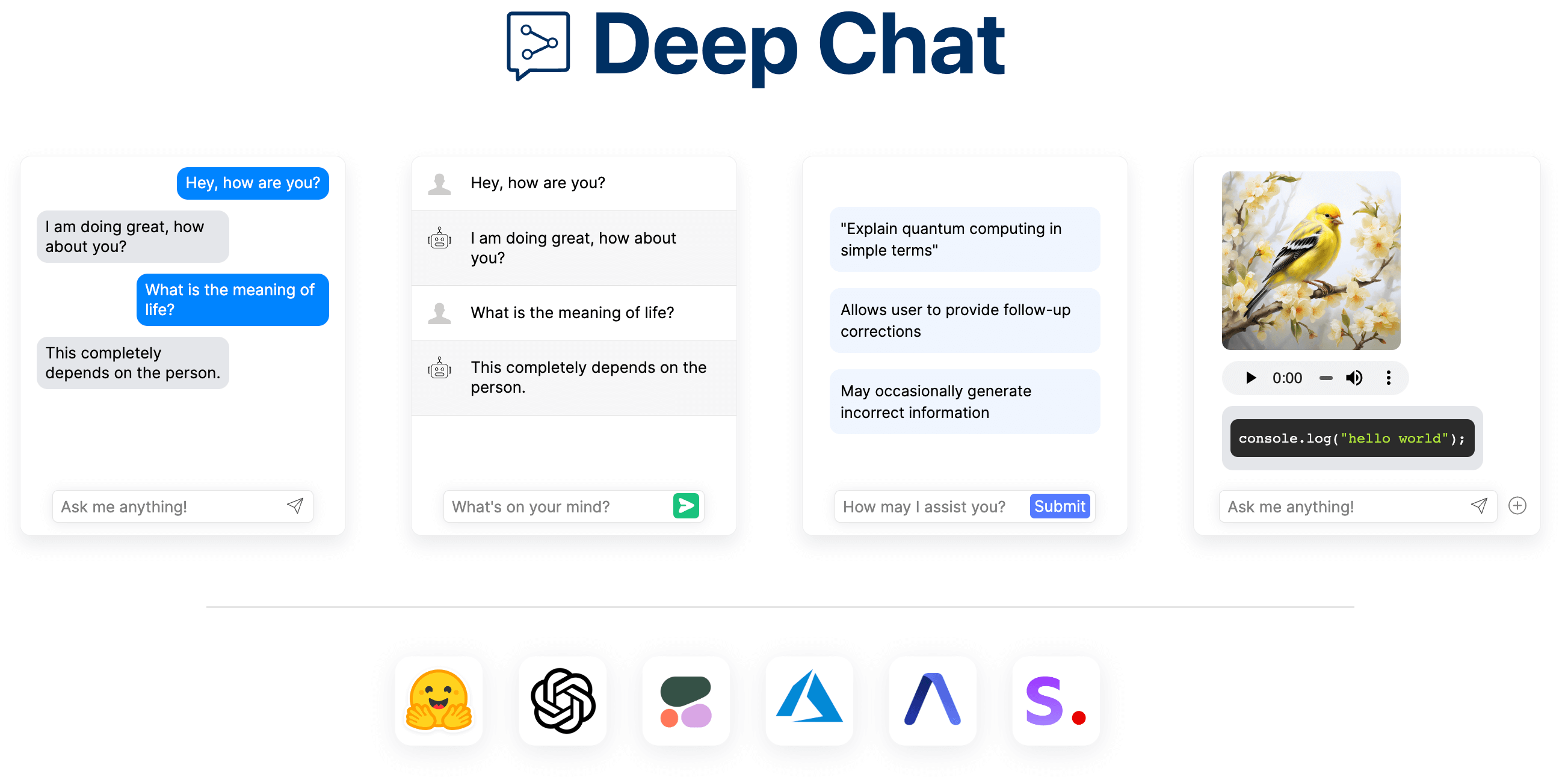For more details, please visit deepchat.devThe official documentation and examples are all available.