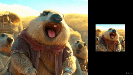 To validate SkyReels V1's graph-generated video capabilities, we fed the model the popular groundhog stills from the Chinese New Year movie Ne Zha's Demon Child Descends, and set the cue word: the groundhog looks up, pauses for a second, and then yells. The results generated by SkyReels V1 are stunning: