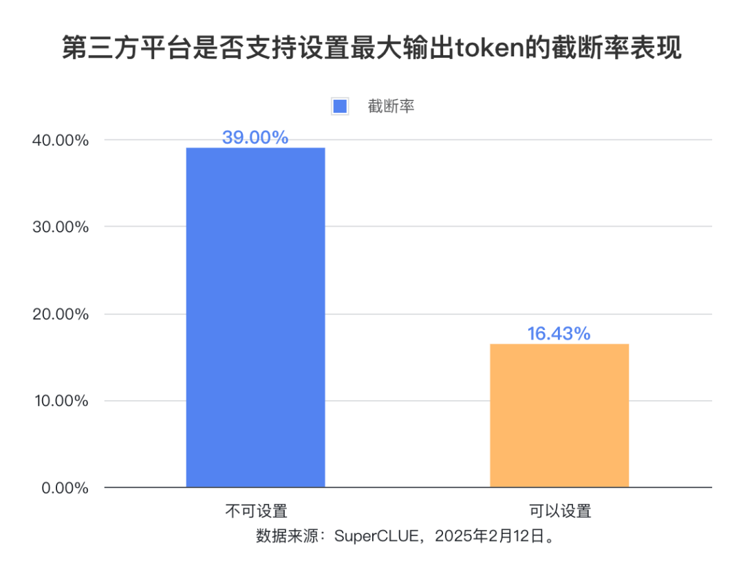 1. The maximum output length limitation of the model is one of the important factors leading to the interruption of responses. Statistics show that some platforms fail to provide flexible adjustment of the max_tokens parameter (e.g., Baidu Intelligent Cloud, Tencent Cloud TI platform, etc.). This makes the model more prone to truncation when generating longer replies. The data shows that the average truncation rate of platforms that cannot set the max_tokens parameter is 39%, while the truncation rate of platforms that can set the parameter is 16.43%. In particular, in this evaluation, the complexity of elementary school Olympiad questions and the tediousness of the problem solving steps lead to a significant increase in the length of the content that needs to be generated by the model, and the problem of token restriction is further amplified as a result. that exacerbates the occurrence of output truncation.