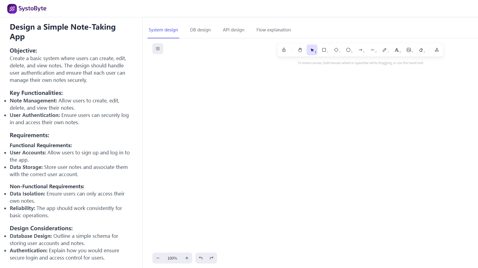 With the above detailed usage help, users can easily get started with the SystoByte platform and fully improve their system design skills, especially in interview preparation.