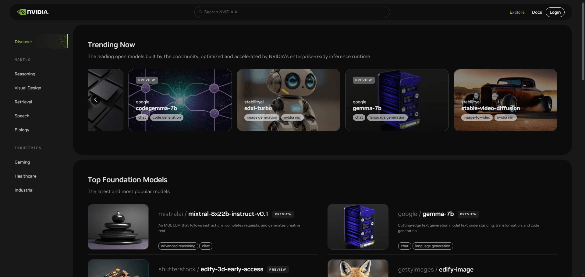 NVIDIA Build是一个集合了社区构建的领先开放模型,由NVIDIA的企业级推理运行时优化和加速。该平台展示了特定于语言生成、高级推理、代码生成、图像生成和多模态模型等领域的最新和最流行的模型,为企业提供AI解决方案。