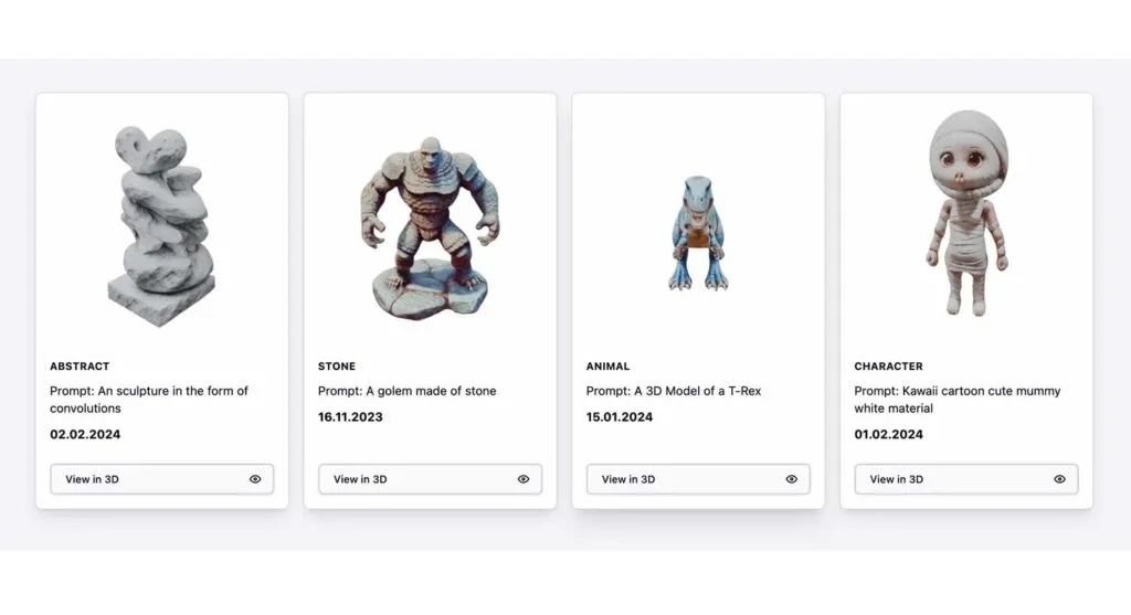 Luma AI 在 2022 年 12 月便已发布了名为 “Imagine 3D” 的 AI 3D 模型生成器测试版,引发业界关注。 用户只需输入简单的文本描述,Imagine 3D 就能自动生成相应的 3D 模型。 2023 年 11 月,Luma AI 推出了升级版本 Luma Genie,用户可以通过 Discord 平台免费试用这款功能强大的工具。