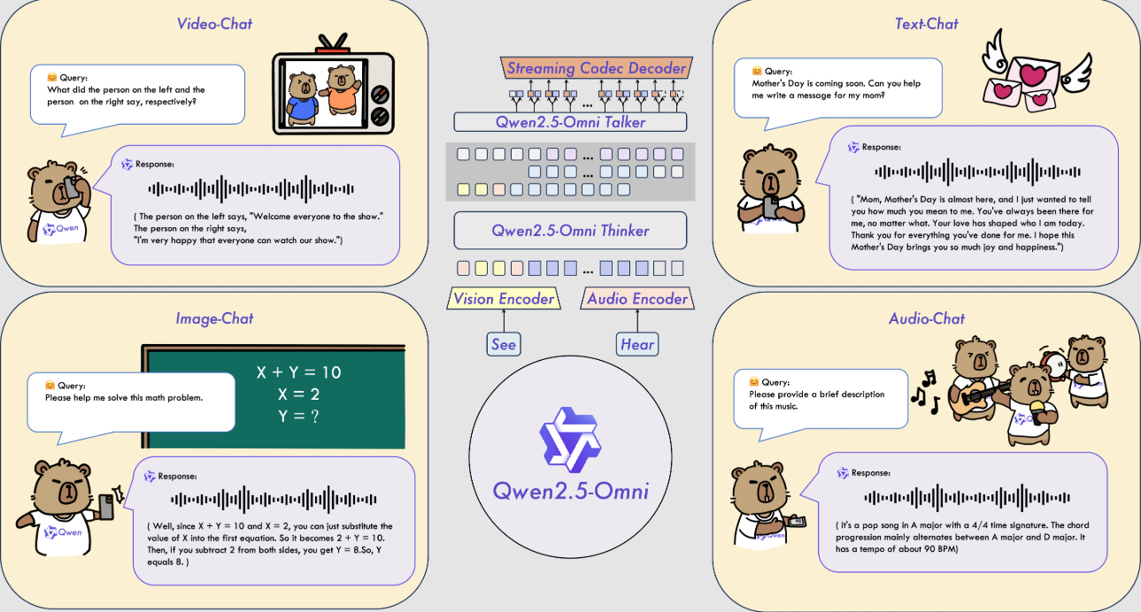 from transformers import Qwen2_5OmniModel, Qwen2_5OmniProcessor model = Qwen2_5OmniModel.from_pretrained("Qwen/Qwen2.5-Omni-7B", device_map="auto") processor = Qwen2_5OmniProcessor.from_pretrained("Qwen/Qwen2.5-Omni-7B") - 输入文本并生成响应:
