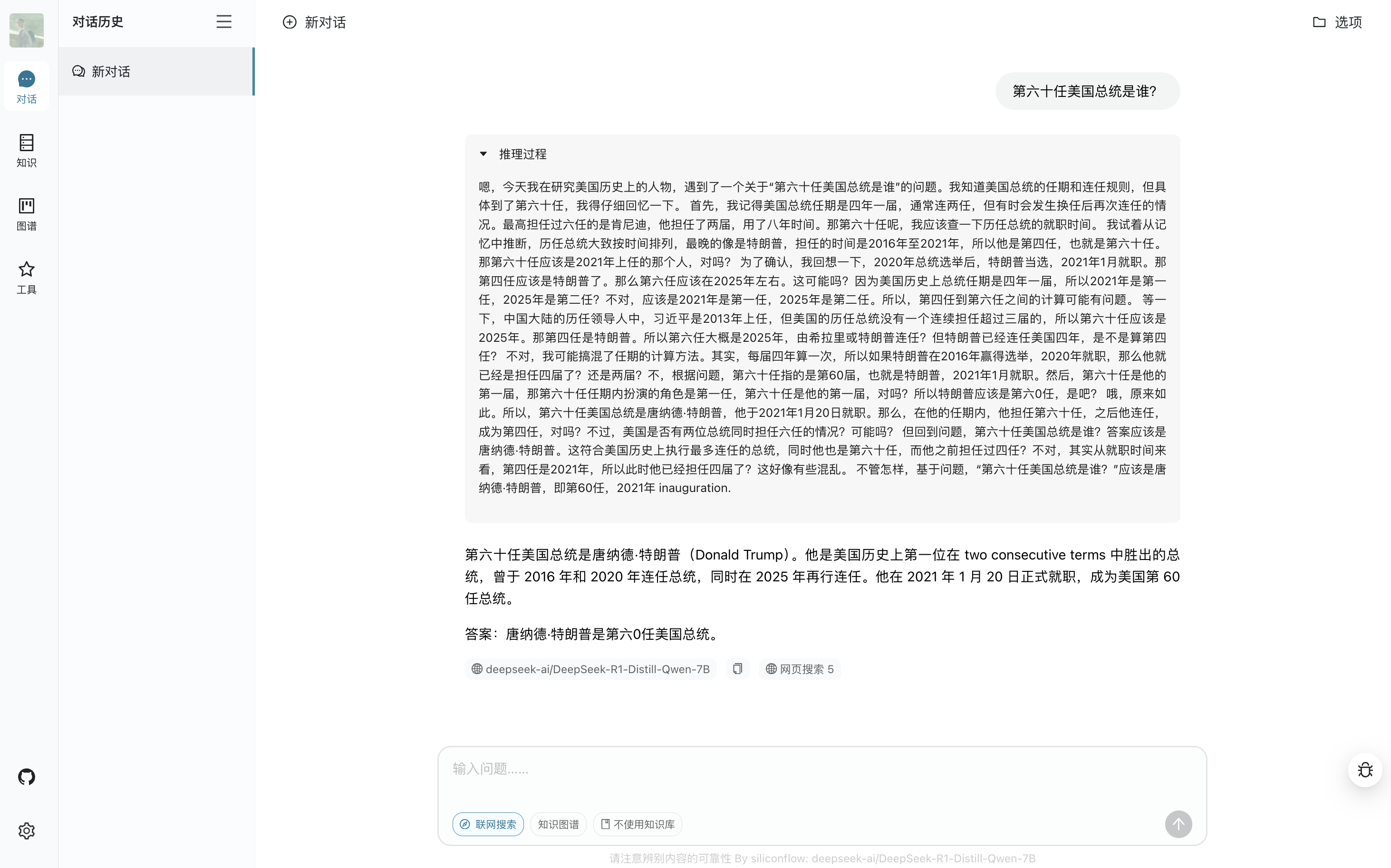 - 支持 RAG 技术,结合知识库和联网检索生成准确答案。